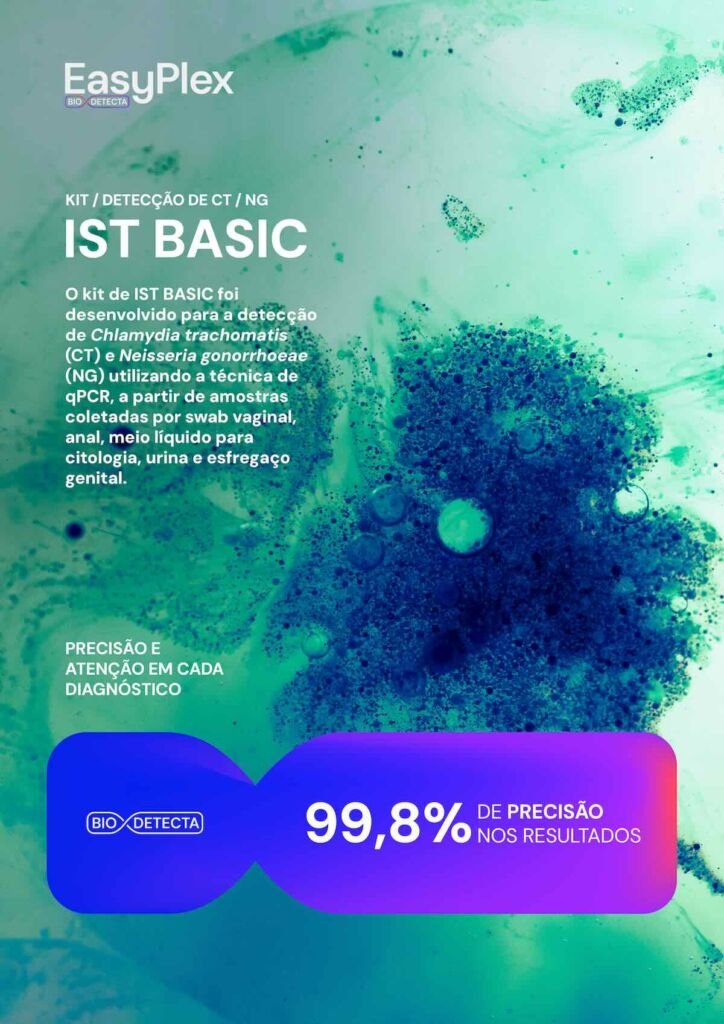 O kit de IST BASIC foi desenvolvido para a detecção de Chlamydia trachomatis (CT) e Neisseria gonorrhoeae (NG) utilizando a técnica de qPCR, a partir de amostras coletadas por swab vaginal, anal, meio líquido para citologia, urina e esfregaço genital.