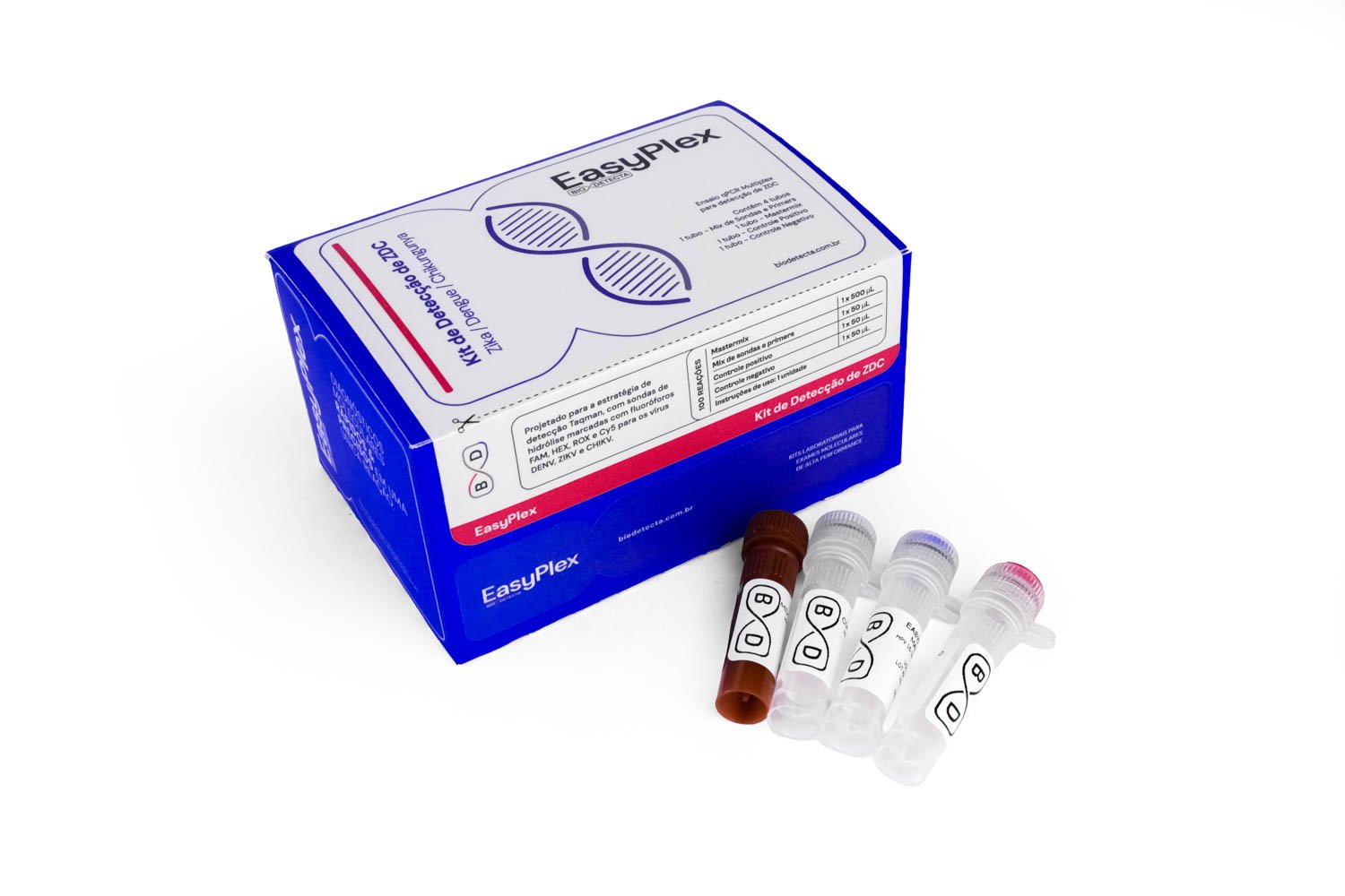 O kit de ZDC foi desenvolvido para a detecção do Zika Vírus, Dengue e Chikungunya utilizando a técnica de RT-qPCR, a partir de amostras coletadas por sangue total, soro ou plasma.